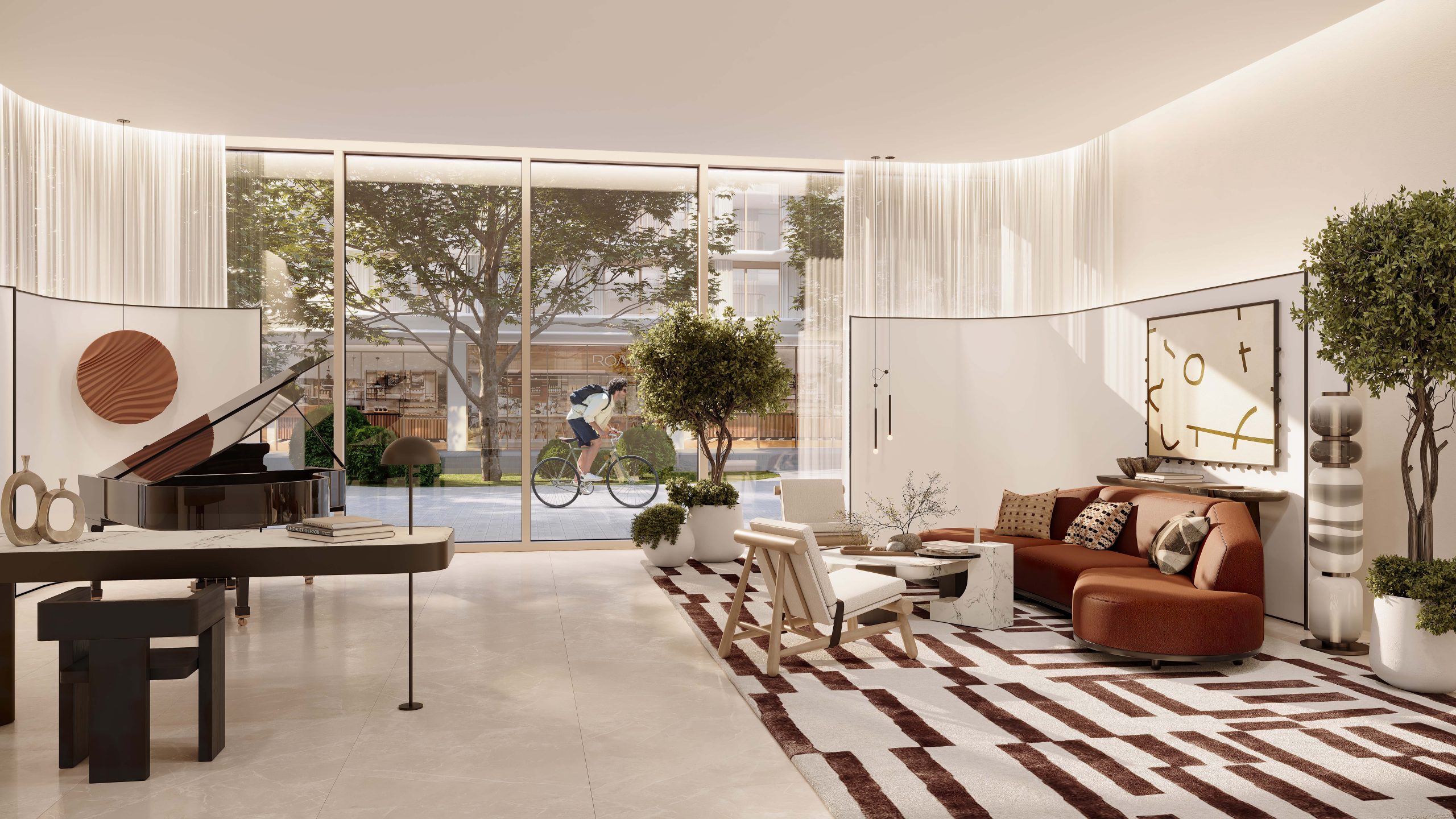 Interior Features: Inside, the residences showcase high-end finishes, blending contemporary style with warm tones. The apartments are thoughtfully designed, with large windows ,High ceilings, open spaces that maximize natural light and radiate refinement and openness.