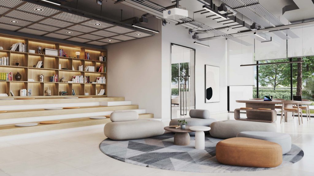 Design Concept: The development features three identical L-shaped residential towers, each rising to 9 floors. These towers are unified by a shared podium, which supports a spacious landscape, enhancing the connection between indoor and outdoor living. The buildings have been designed to maximize open, direct views, ensuring a high-quality experience for both residents and visitors. Each unit boasts expansive balconies that align with the stunning canal or lush green courtyards, offering residents uninterrupted vistas and the perfect setting for relaxation or entertainment.