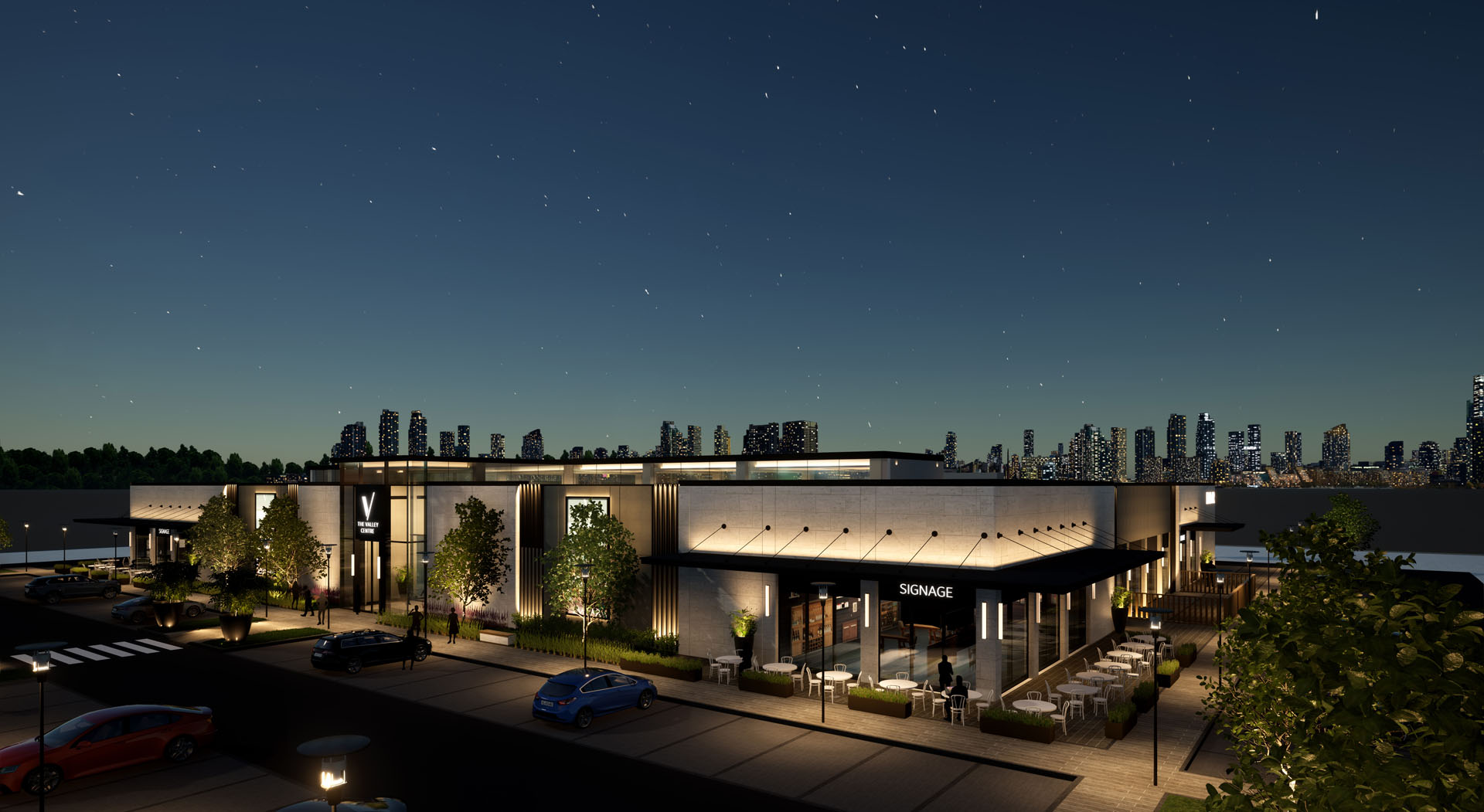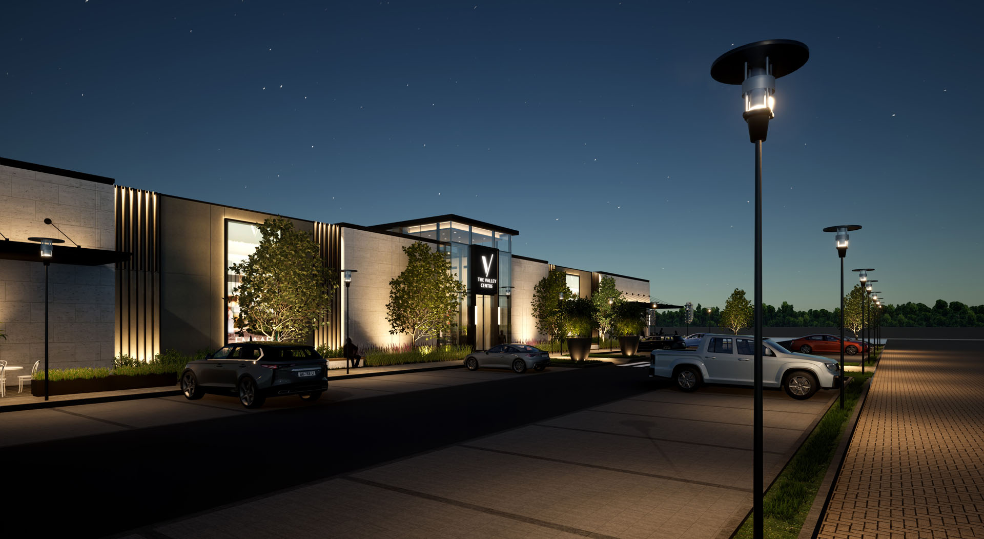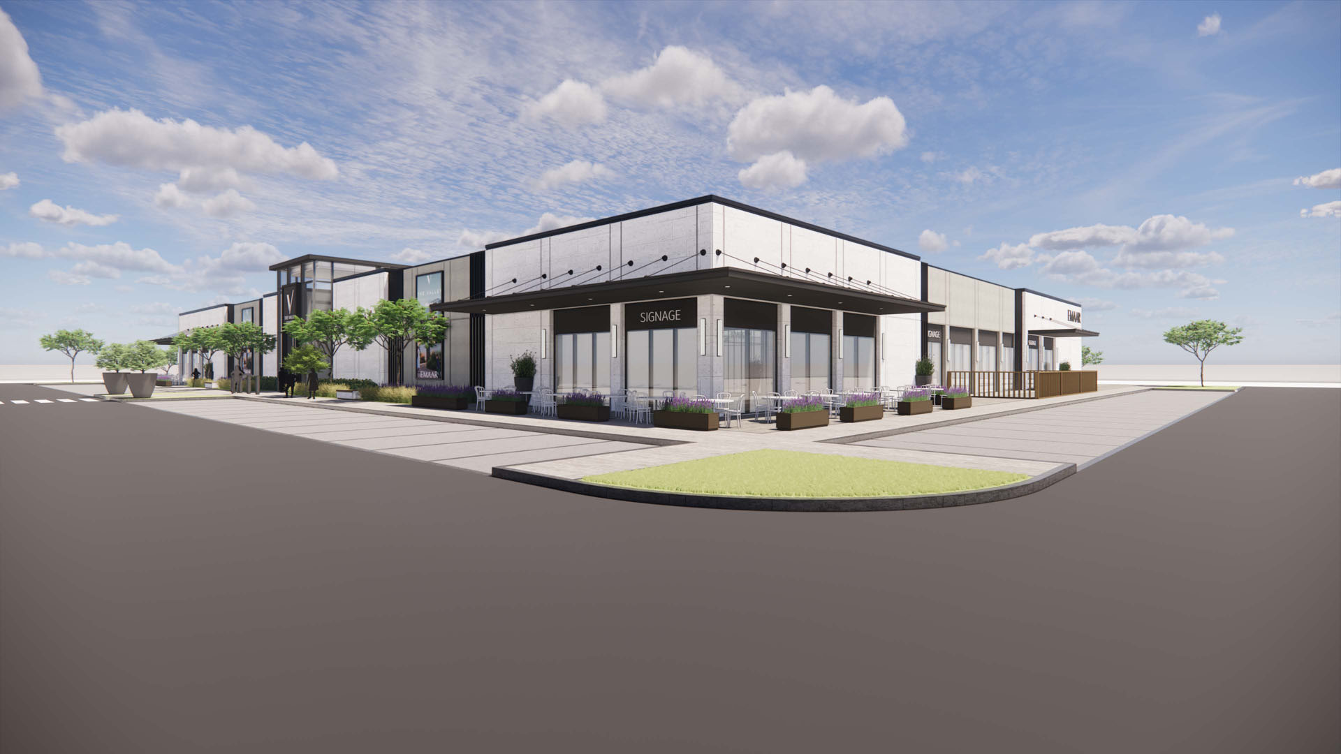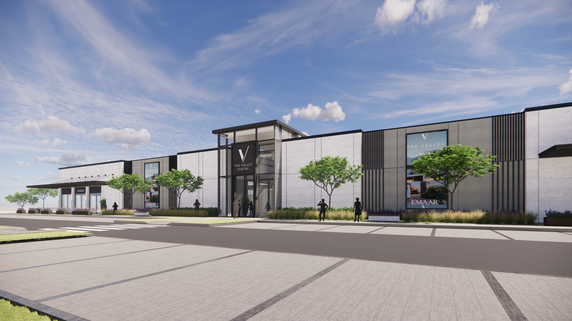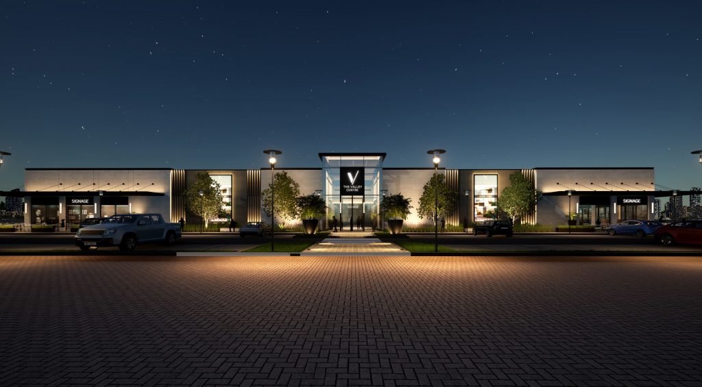 The Valley Retail center is a modern commercial retail building designed to serve the residents of The Valley community. Situated on Al Ain Road, Dubai. It consists of one floor approximately 43,000 ft² built-up area serving as commercial space for supermarket, clinics and other retails The design vision focuses on creating an aesthetically welcoming and vibrant commercial hub. The retail pavilion’s architecture incorporates contemporary design elements The building is made up of RCC structure so it’s ground only building. high ceilings and expansive floor-to-ceiling glazing, which enhance the sense of openness, the use of metal cladding and canopies , which provides a sleek, modern appearance while ensuring durability.